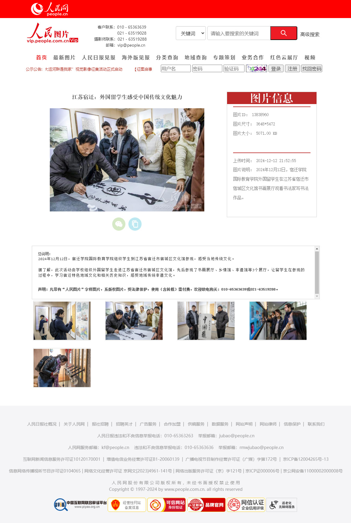 12月12日,人民网发布题为《江苏宿迁:外国留学生感受中国传统文化魅力》的报道,深度关注了宿迁学院国际教育学院组织的一次别开生面的文化交流活动。此次活动引领外国留学生走进宿迁市宿城区文化馆,近距离感受当地传统文化的独特韵味。