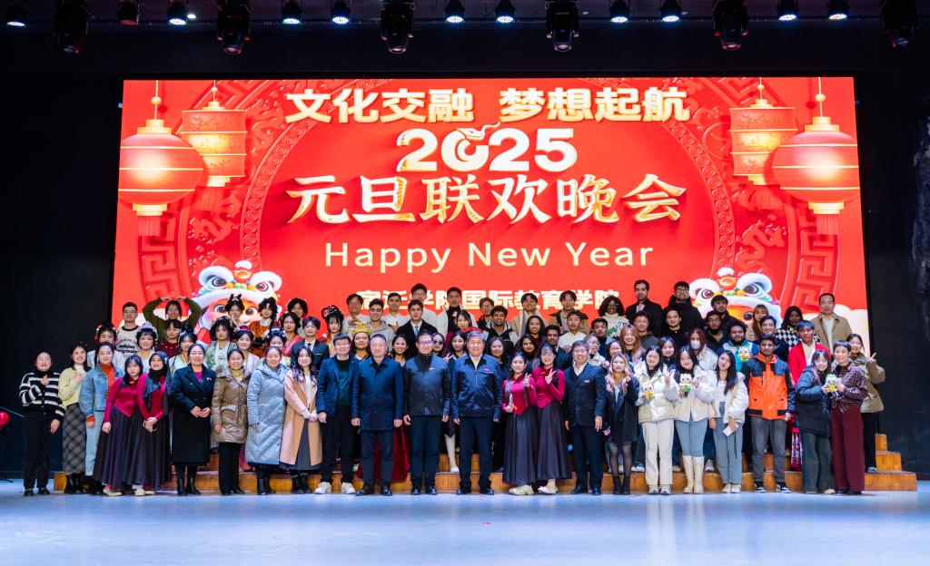 2024年12月26日晚,宿迁学院国际教育学院在大学生活动中心举办了以“文化交融,梦想起航”为主题的2025年留学生元旦联欢晚会。校党委副书记田一聚亲临现场,宣传部、保卫处、团委等多部门负责人、经济管理学院、教师教育学院负责人及教师代表、国际教育学院全体师生及中国学生代表出席。