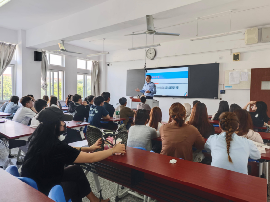 讲座于上午10点在知行楼1205教室准时开始。李所长凭借丰富的实务经验,深入结合高校学生特点,剖析了电信诈骗的常见类型和识别技巧。他从“网络刷单”“冒充公检法”到“虚假网络贷款”等典型骗局入手,细致解读诈骗套路,提醒留学生务必保持警惕,做到“不轻信、不转账、多核实”。