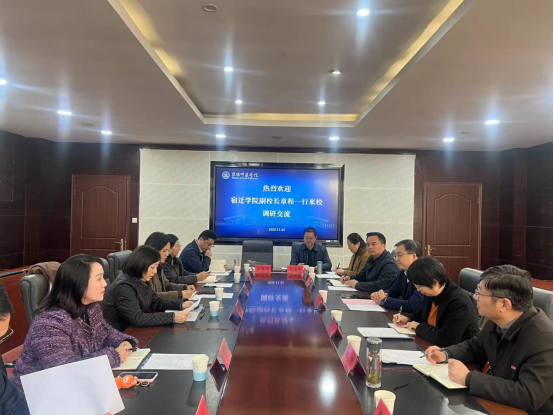 11月25日,党委常委、副校长章程带队赴淮阴师范学院开展专题调研,围绕中外合作办学机构筹建和运行深入交流。人事处、教务处、学生处、国际合作与交流处、财务处、信息工程学院及艺术与传媒学院等部门、单位领导陪同调研。